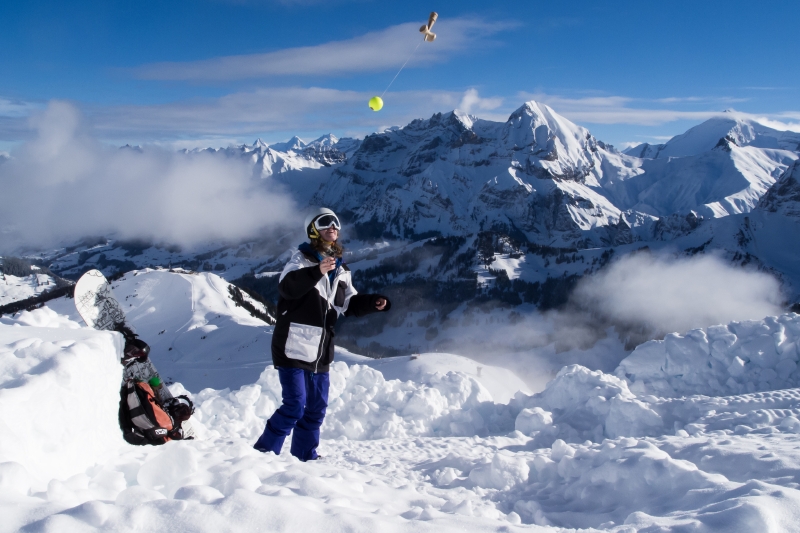 I hiked with my Snowboard on the top of this swiss mountain for making the photo. You can see that playing Kendama is not only possible in the cities. All around the world you CAN play Kendama, also on a top of a mountain! It was really cold (-10 degrees), but I think it’s a great picture!! After that shot I had an awesome powder run! Successful day for me!