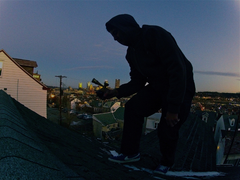 - 028 “Pittsburgh rooftop session” (USA) This picture was taken on the roof of my house in Pittsburgh Pennsylvania, I woke up at 6:30 to get the sunrise in the shot, which you can see on the right.