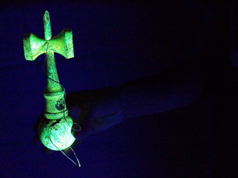 - 039 “A Light in the Darkness” (UK) This photo I took when playing with my Kendama in the dark. I then saw it reflect some green light off my computer monitor indicator and thought it looked really cool, so i decided to paint the entire Kendama in a UV sen