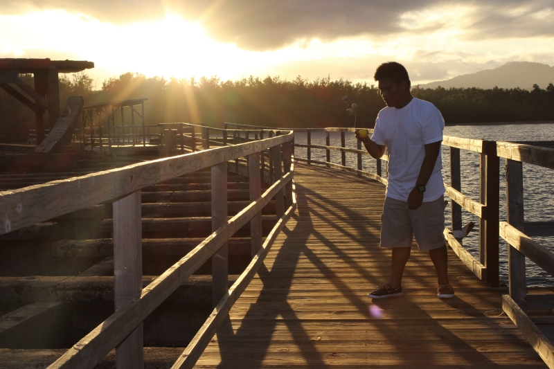 - 041 “The beautiful sunset on the boardwalk of Kauai,Hawaii, enjoying the fun of kendama.” (USA)