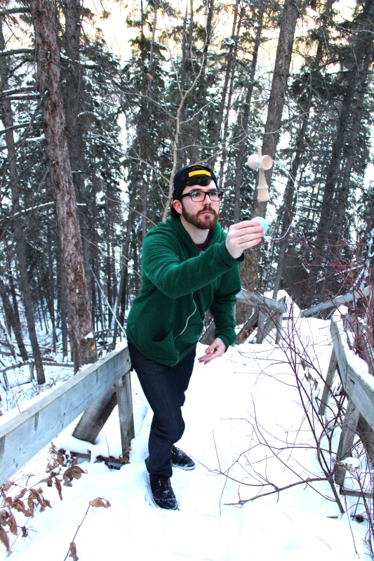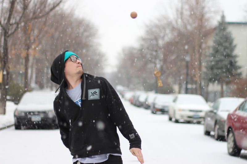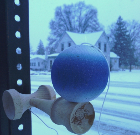 It was snowing like crazy outside and I got inspired to try a new trick. No matter what the weather you must kendama!