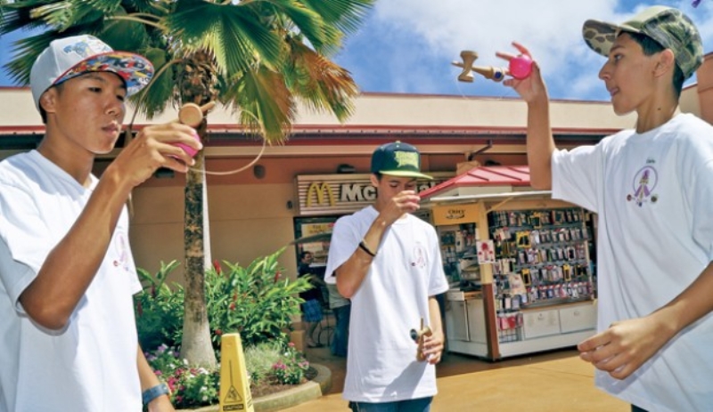 - 045 Nothing like damaing with friends” (USA) This picture is of my friends playing kendama in our backyard, the beautiful Kaua’i Hawaii. The action of kendama for me is the adreanaline you get from playing and landing that one trick you’ve been trying for