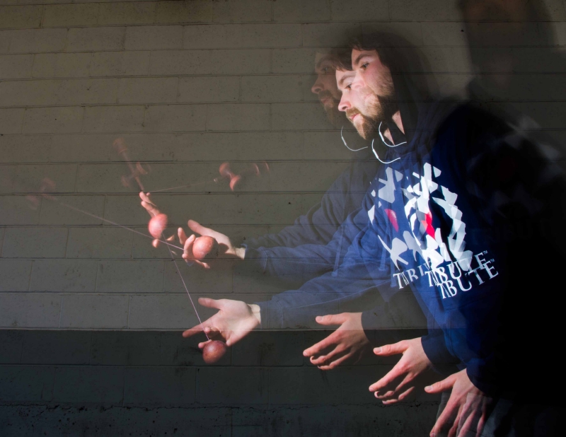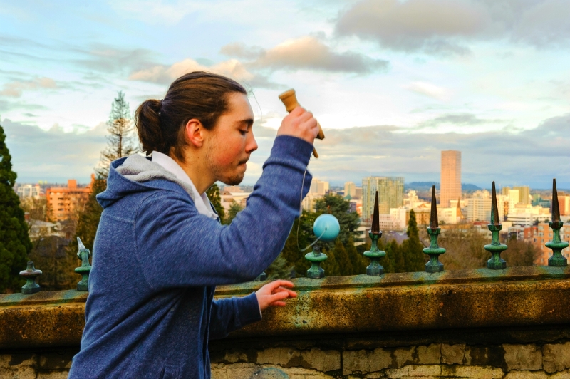 This is a photo of Jake Wiens at home in the famous KenGarden. I shot this one awhile ago but figured it was perfect for this comp because I felt like there is a lot of action in this shot from the kendama, to the look on his eyes. Hope you guys enjoy. Also he is playing on a version 1 yellow sunrise. I also tried to have only the string in focus which i think worked out nicely, and created a nice foreground, background and middle ground.