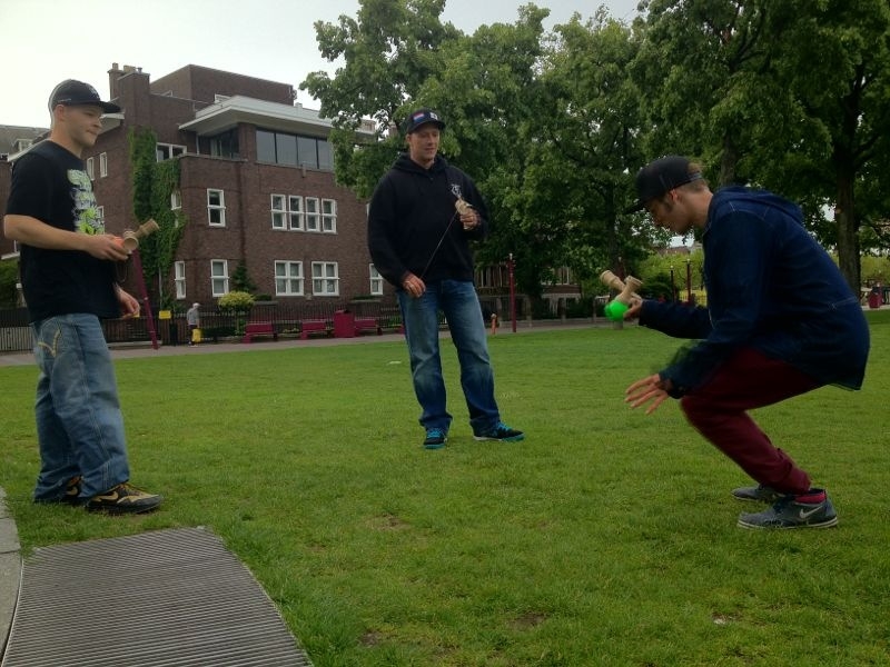 - 060 “IT’S NOT JUST A TOY!” (Switzerland) This Picture is a captured scene of a very funny Kendama Jam session with Jeffry van Reeven and Alex Ruisch. I visited them in Amsterdam last year to enjoy Kendama. We figured out new trick’s, did some business tal
