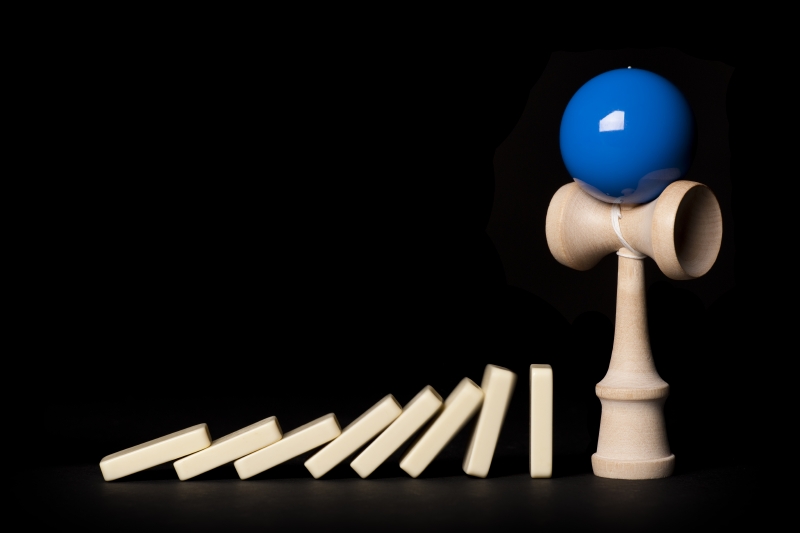- 063 “Kendamino Effect” (USA) Kendama and Dominos share many similarities. They are a universal language. You can sit quietly with a person from another country and enjoy a game of dominos without saying a word, much like kendama. This image illustrates on