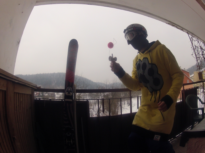 - 084 “little warm up before skiing” (Poland) As you can see I’m practising my kendama skills before skiing in my home. It’s good warm up 😉