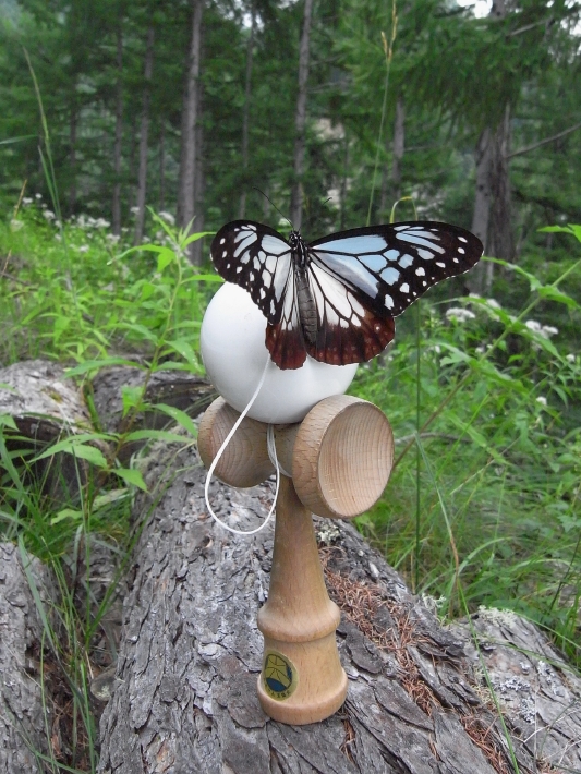 チョウは旅をするチョウ、アサギマダラです。このけん玉から、南の国へ旅立ちました。